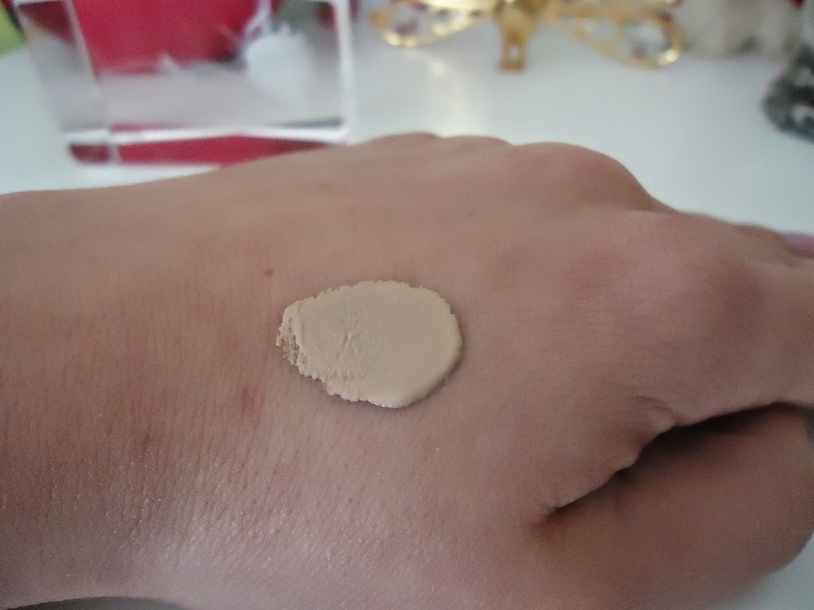 Au niveau de la teinte choisie, elle me convient parfaitement. Sur la photo, vous voyez la différence avec mes mains, mais mon visage est beaucoup plus clair. L’application est vraiment géniale, il ne s’effrite pas, est uniforme, on le travaille comme on veut et chose hyper importante et magique : il cache super bien les imperfections ! La peau est nette après l’avoir mis, il n’y a plus qu’à matifier le tout et c’est bon. Le seul hic, c’est son prix, 25.50€.